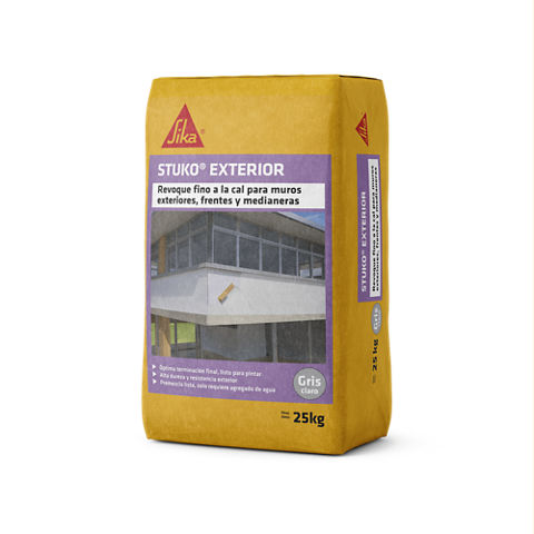Es un mortero en polvo al cual solo se necesita incorporar agua para lograr en una sola capa de aplicación un revoque fino a la cal para ejecutar terminaciones exteriores. Fabricado y premezclado en seco a partir de cemento, cal, y una curva granulométrica de arenas controlada, que logran una óptima calidad de terminación para fachadas y medianeras y con mayor rapidez de aplicación.