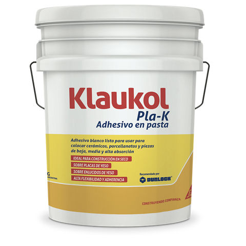 Klaukol Pla-K® es un adhesivo elaborado a base de emulsiones acrílicas, resinas sintéticas y cargas minerales, con buen rendimiento, excelente adherencia y buena tixotropia.