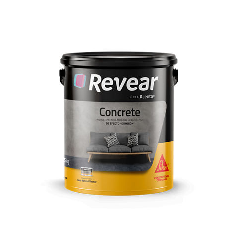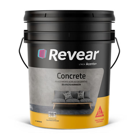 Revear Concrete es un revestimiento acrílico decorativo de efecto hormigón, listo para usar. Se compone de resinas acrílicas, cargas minerales y pigmentos. Otorga textura tipo hormigón, es impermeable al polvo y resistente a microfisuras.