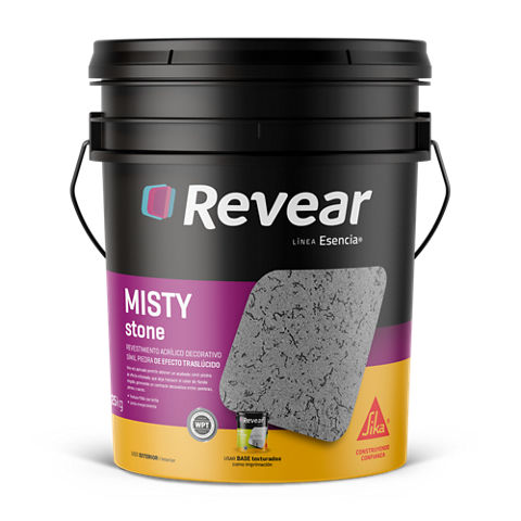 Revestimiento decorativo desarrollado con polímeros acrílicos, pigmentos, aditivos y cargas minerales naturales, brinda gran resistencia a la intemperie, mejora la impermeabilidad. Revear Misty Stone logra una apariencia de textura simil piedra con un efecto traslucido parcial que deja ver el color de fondo generando un contraste decorativo, se puede lograr una terminación tipo Travertino o Rulato