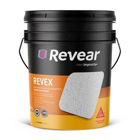 Revear REVEX MEDIO es un revestimiento formulado en base a resinas acrílicas, aditivos plastificantes, pigmentos y cargas minerales especiales. Por su composición se considera un producto resistente, que brinda excelente protección contra los agentes climáticos y puede reemplazar revoque Fino y Pintura.
